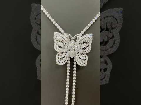 18K WHITE GOLD TENNIS NECKLACE WITH BUTTERFLY.